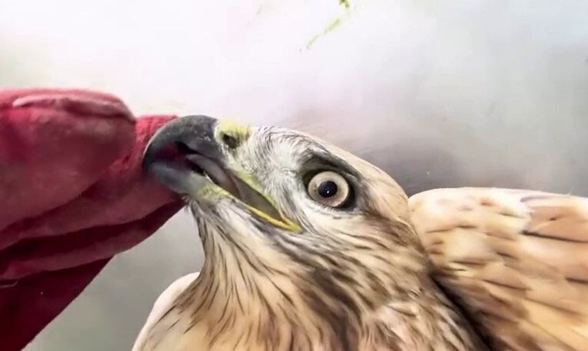 ERZURUM’DA BİTKİN HALDE BULUNAN BİR KIZIL ŞAHİN, GEREKLİ BAKIM VE BESLENMESİNDEN SONRA SAĞLIĞINA KAVUŞTU.