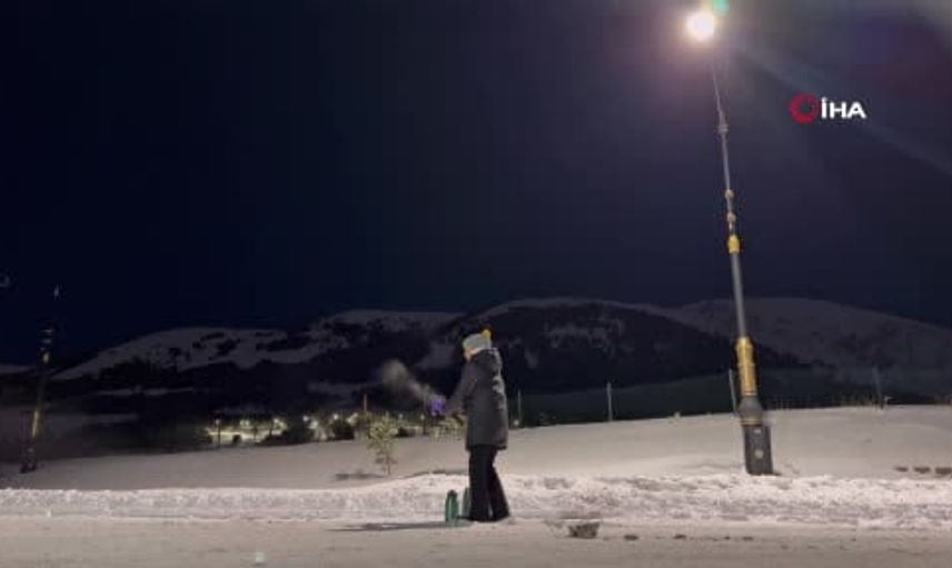Erzurum'da eksi 25: Kaynar su havada donma anı sosyal medyada viral oldu