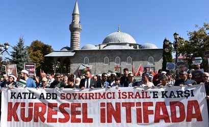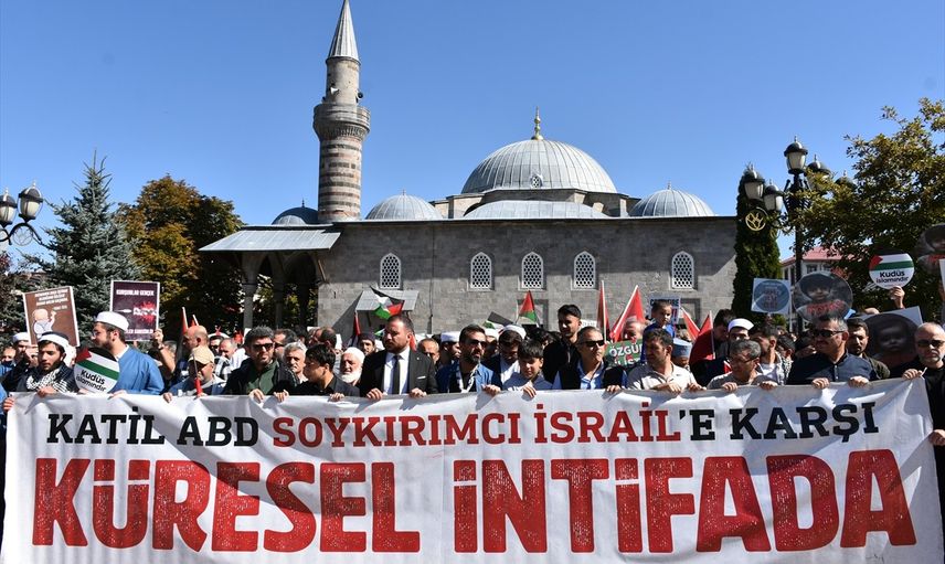 Erzurum'da gerçekleştirilen "Ayağa Kalk Gazze Özgür Olacak" temalı etkinlikte, İsrail'in Gazze'ye yönelik saldırılarına karşı protesto düzenlendi. Etkinlik, kentin merkezi alanlarından biri olan Lala Mustafa Paşa Camisi önünde topluluk üyeleri ve vatandaşların katılımıyla başladı. Katılımcılar, Türk, Filistin ve Sincan Uygur Özerk Bölgesi bayraklarını taşıyarak, pankart ve dövizlerle Havuzbaşı Kent Meydanı'na doğru yürüdü.