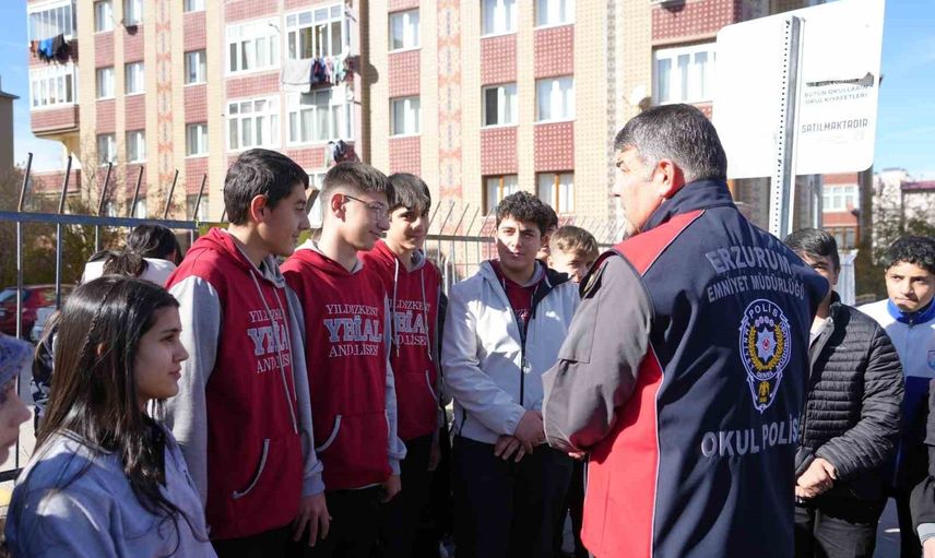 ERZURUM İL EMNİYET MÜDÜRÜ ONUR KARABURUN, "GELECEĞİMİZİN TEMİNATI ÇOCUKLARIMIZIN YANINDAYIZ, İYİ Kİ VARSINIZ" KONULU OKULLAR VE ÇEVRESİNDE GERÇEKLEŞTİRİLEN UYGULAMALAR KAPSAMINDA YILDIZKENT BORSA İSTANBUL ANADOLU LİSESİ'Nİ ZİYARET EDEREK YAPILAN ÇALIŞMALAR HAKKINDA BİLGİ ALDI VE GENÇLERLE BİR ARAYA GELDİ.