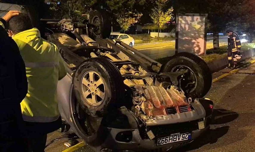 PALANDÖKEN İLÇESİ MEVLANA VADİSİ’NDE SEYİR HALİNDE OLAN 25 ABH 992 PLAKALI KAMYONET, GÖRGÜ TANIKLARI VE SÜRÜCÜNÜN İDDİASINA GÖRE YOLUN ORTASINDA BULUNAN KALDIRIM TAŞINA ÇARPMASI SONUCU KONTROLDEN ÇIKARAK TAKLA ATTI.