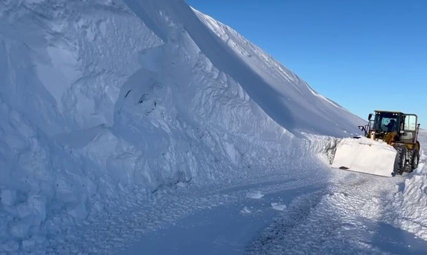 Karla mücadele ekipleri iş makineleriyle birlikte sahada çalışmaya devam ederek kapanan yolların ulaşıma açılmasını sağlamaya çalışıyor.