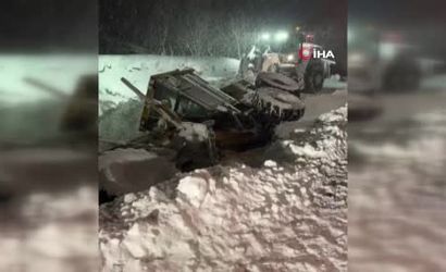 Erzurum'da kar temizleme aracının devrilmesi