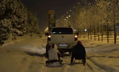 Erzurum’da off-road meraklıları, trafiğe kapalı bir alanda bir araya gelerek kışı farklı bir şekilde değerlendirdi. Erzurum Off-Road Doğa Sporları ve Macera Ekibi, kent merkezinde 30-40 santimetreyi bulan karı fırsata çevirip araçlarının arkasına bağladıkları kızak ve lastik botlarla pist oluşturarak kaydı.