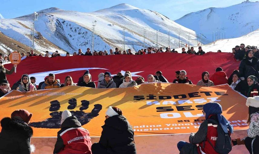 Erzurum'da Palandöken'de "Şiddete Karşı Tek Yürek" Yürüyüşü