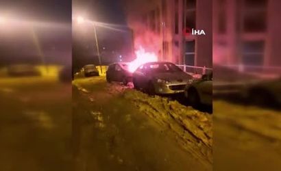 Erzurum Yakutiye'de park halindeki otomobil alev aldı