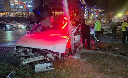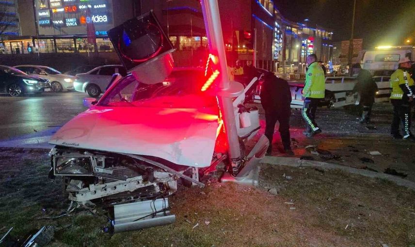 ERZURUM’DA POLİS KONTROL NOKTASINDAN KAÇAN BİR SÜRÜCÜ, ÖNCE KAVŞAKTA BAŞKA BİR ARACA DAHA SONRA DA AYDINLATMA DİREĞİNE ÇARPTI.