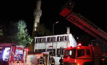 Erzurum'da tarihi caminin çatısında çıkan yangın, itfaiye ekiplerinin müdahalesi ve TOMA'nın desteğiyle söndürüldü.