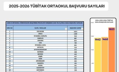 Erzurum, TÜBİTAK 2204/B Ortaokul Öğrencileri Araştırma Projeleri Yarışması çerçevesinde sunduğu bin 823 proje ile Türkiye genelinde birinci oldu.