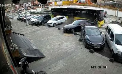 Çarpma anı, yakındaki bir iş yerinin güvenlik kamerasına yansıdı. Görüntülerde otobüsün seyir halindeyken park halindeki araçlara çarpması ve kısa süre sonra durması yer alıyor.