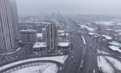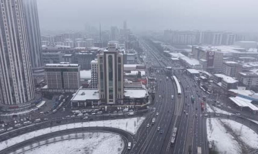 Yağışın etkilediği Esenyurt, havadan dron ile görüntülendi; görüntülerde ilçenin bazı alanlarının karla kaplandığı görüldü.