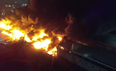 Esenyurt'ta hırdavat fabrikasında devam eden yangın