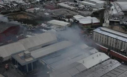 İtfaiye ekiplerinin soğutma çalışmaları havadan görüntülendi