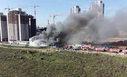 Esenyurt Orhan Gazi Mahallesindeki bir inşaat alanında bulunan 3 katlı, 400 metrekare büyüklüğündeki işçi konteynerinde öğle arasında henüz belirlenemeyen bir nedenle yangın çıktı. Alevler kısa sürede tüm konteyneri sardı.