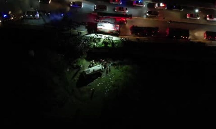 Esenyurt'ta servis minibüsü şarampole yuvarlandı — kaza havadan görüntülendi