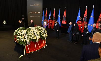 Arnavutluk'ta tedavi gördüğü hastanede 31 Ekim'de hayatını kaybeden eski Başbakan Fatos Nano'nun cenazesi, başkent Tiran'daki Kongre Sarayı'nda düzenlenen devlet töreniyle toprağa verildi.