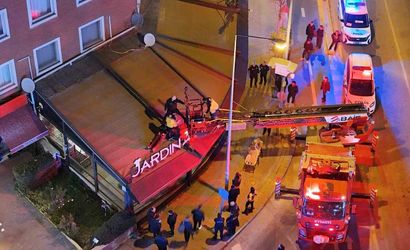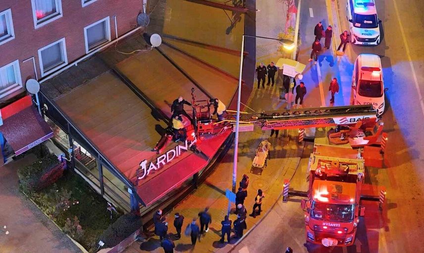 2. kattan kafenin tentesine düşen kişi itfaiye tarafından indirildi