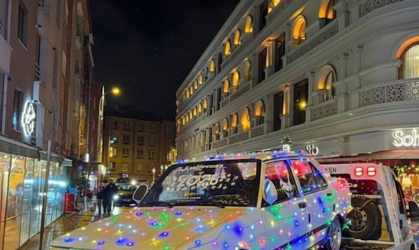 Eskişehir'de yılbaşı gecesi ışıklarla süslenmiş otomobil ilgi çekti
