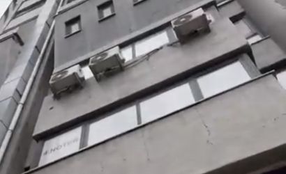 Eskişehir'de iş hanından düşen taşlar motosikletlere zarar verdi