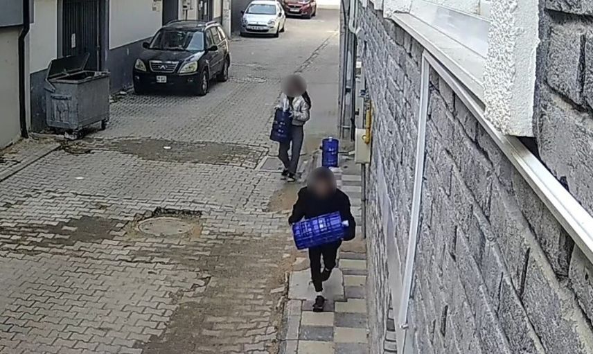 Kamera kayıtları: Güvenlik kamerasına yansıyan görüntülerde çocukların önce çevreyi gözetledikleri, kimse olmadığını kontrol ettikten sonra damacanaları kucaklayıp koşarak uzaklaştıkları görülüyor. Anlar saniye saniye kayda geçti.