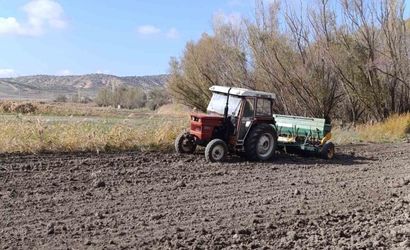 Ekim öncesinde yağan yağmurların yüz güldürdüğünü anlatan Turgut, önceden sürülmüş toprağına arpa ve buğday tohumlarını mibzer yardımıyla ektiğini kaydetti.