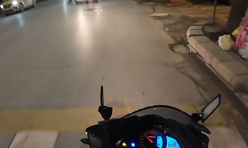 Yaşanan panik anları motosikletin kask kamerası kaydetti. Görüntülerde, tehlikeli anların ardından otomobil sürücüsünün durmayıp özür dilemeden yoluna devam ettiği görülüyor.
