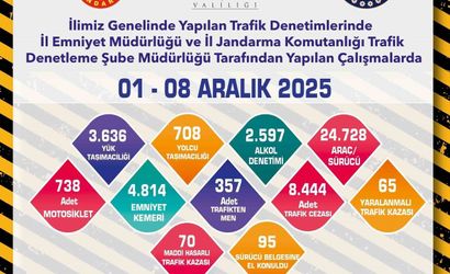1-8 Aralık tarihlerinde yapılan kontrollerde çok sayıda araç, işyeri ve kişi incelendi