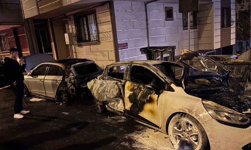 Eyüpsultan'da park halindeki iki araç alevlere teslim oldu