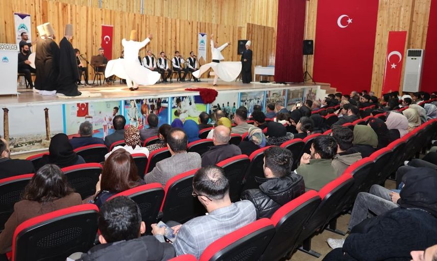 Konuşmaların ardından Şanlıurfa Mevlevihanesi Türk Tasavvuf Musikisi Topluluğu çeşitli ilahiler seslendirirken, semazenlerin gösterileri programın manevi atmosferini güçlendirdi. Etkinlik, yapılan dualarla ve kandil simidi ikramıyla sona erdi.