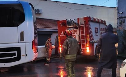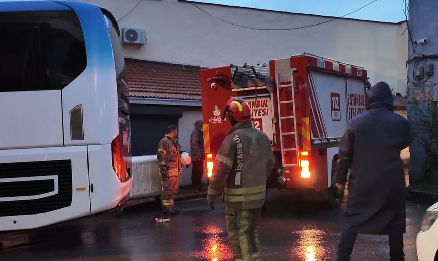Öte yandan, bölgeye ulaşan itfaiye aracının manevra yapmakta zorlanmasına sebep olan unsur, sokakta hatalı park yapan bir tur otobüsü oldu. Yaşanan anlar çevredeki kameralar tarafından kaydedildi.