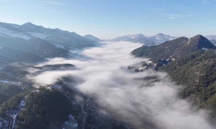 Adana'ya bağlı Feke ilçesinde sabah saatlerinde ortaya çıkan sis, kızılçam ormanları ile karlı dağların arasında sakin ve etkileyici bir görüntü oluşturdu. Bölge halkı ve ziyaretçiler, doğayla iç içe bu atmosferi izleme şansı buldu.