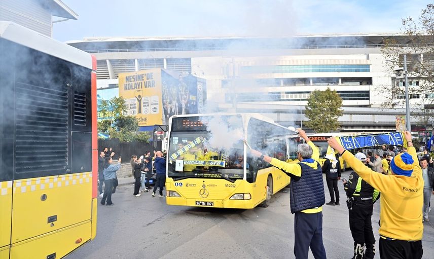 Fenerbahçe taraftarı, Trendyol Süper Lig'in 11. haftasında bu akşam oynanacak Beşiktaş derbisi için Chobani Stadı'ndan İETT'ye ait otobüslerle Tüpraş Stadı'na hareket etti.