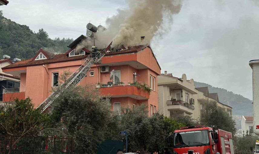 Fethiye'de çatı katı yangını: İtfaiye yaklaşık bir saatlik müdahaleyle söndürdü