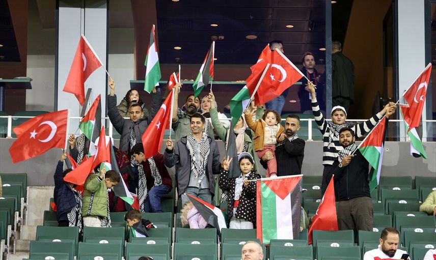 2026 FIFA Dünya Kupası Avrupa Elemeleri E Grubu'nda Türkiye ile Gürcistan arasında oynanacak karşılaşması için Anadolu Ajansı'nın (AA) Filistinli çalışanlarının çocukları ve refakatçileri de tribünde yer aldı.