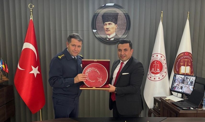 Başsavcı Çatlı, görüşmeye katılımı ve katkıları nedeniyle Garnizon Komutanı Albay Serhan Güngör'e teşekkür ederek hediye takdim etti. Albay Güngör de adliye hizmetlerini güçlendirme sürecindeki emek ve çalışmalar için Başsavcı Çatlı'ya teşekkürlerini iletti.