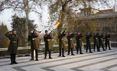 Tören alanında İstiklal Madalyası'nın toka edildiği Türk bayrağı göndere çekildi ve ardından Şehitler Abidesi'nde saygı atışı yapıldı.