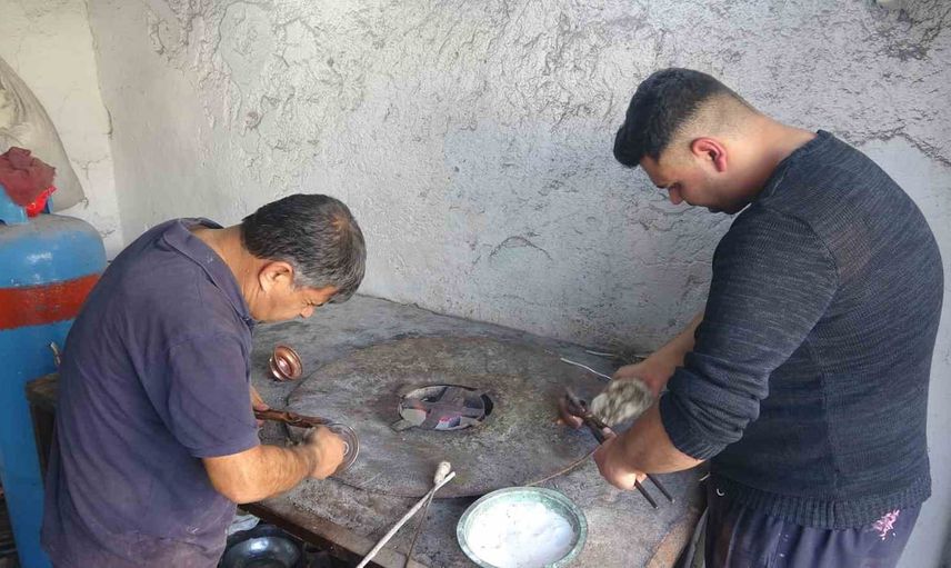 Gaziantep'te nadiren görülen zanaatlardan biri olan kalaycılığı sürdüren Ömer Çetinkaya ile oğlu Halil İbrahim Çetinkaya, hem geçimlerini sağlıyor hem de mesleklerinin devamı için çaba gösteriyor.