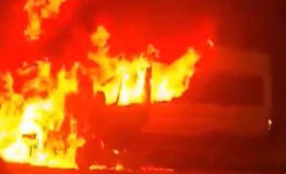 SEYİR HALİNDEKİ İŞÇİ SERVİSİ ALEV TOPUNA DÖNDÜ. YARALANANIN OLMADIĞI OLAYDA SERVİS KULLANILAMAZ HALE GELDİ