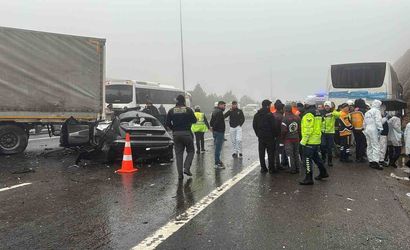 Sis ve sağanağın etkili olduğu güzergahta 10 araç birbirine girdi