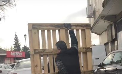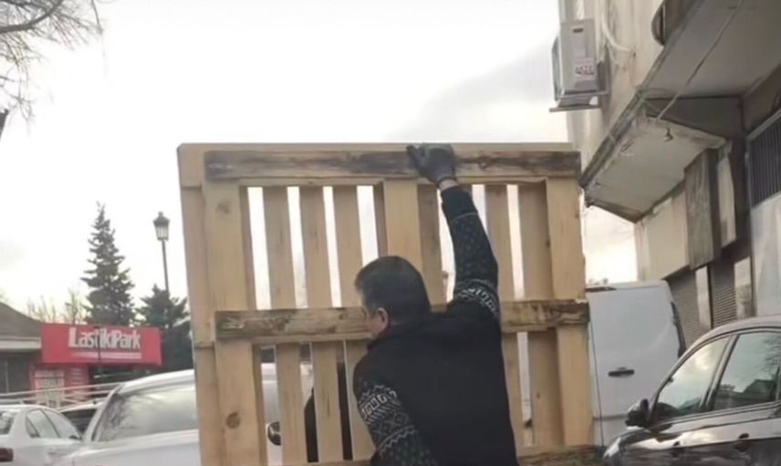Kayda alınan görüntülerde, paleti kucaklayarak ilerleyen şahsın zaman zaman zorlandığı ve dengenin bozulduğu anlar dikkat çekti. Söz konusu anlar, cep telefonu kamerasıyla belgelendi.
