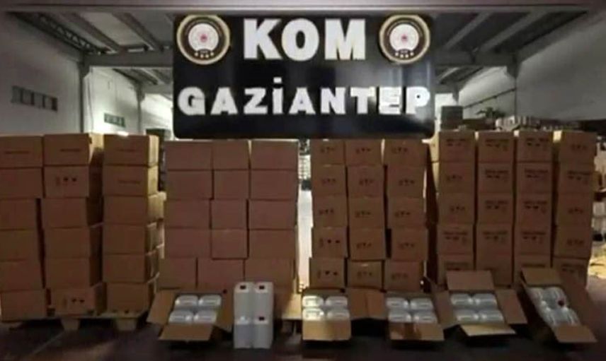 Gaziantep’te yılbaşı öncesi düzenlenen operasyonda, sahte alkol üretiminde kullanılacağı değerlendirilen büyük miktarda etil alkol ele geçirildi.