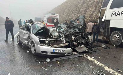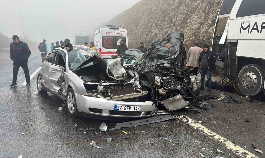 Gaziantep'te yoğun sis ve yağışın etkisiyle 8 aracın karıştığı zincirleme kaza ortalığı savaş alanına çevirdi. Kazada 2 kişi yaşamını yitirdi, çok sayıda kişi yaralandı.