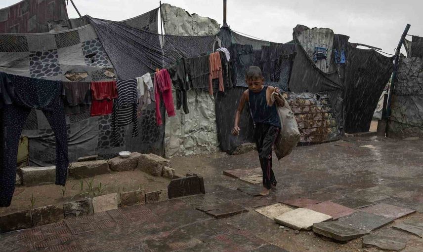 Gazze Şeridi'nde sabah saatlerinden itibaren etkili olan yoğun yağışlar, İsrail'in yerinden ettiği Filistinlilerin yaşadığı çadırları suyla doldurdu. Özellikle Gazze'nin orta kesimindeki Deir el-Belah kentinde yer alan El-Nakheel kampında çadırlar sel suyuna teslim oldu; giysi ve battaniyeler kullanılamaz hale geldi.
