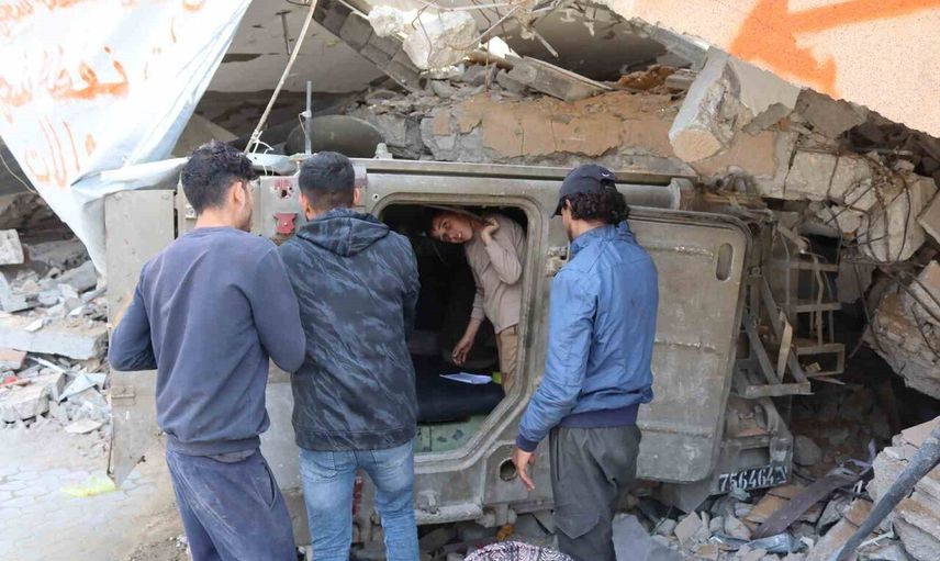 Gazze Şehri'nin Tel el-Hava mahallesinde yaşayan Yahya Hajij, İsrail askerleri tarafından çatışmaların ardından bırakılan bir zırhlı aracı, güneş panelleriyle çalışan bir telefon şarj istasyonuna dönüştürdü.