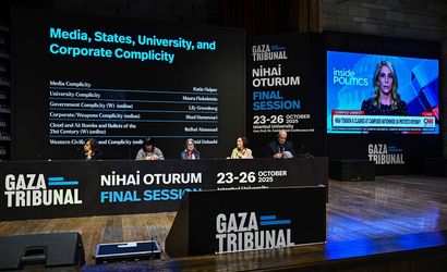 İsrail'in Gazze'de işlediği savaş suçlarını araştırmak üzere kurulan küresel ve bağımsız girişim "Gazze Mahkemesi"nin nihai kararını açıklayacağı "Gazze Mahkemesi: Nihai Oturum" programının üçüncü gününde çeşitli oturumlarda "Suç Ortaklıkları, Uluslararası Sistem, Direniş ve Dayanışma" masaya yatırılacak. Eski Birleşmiş Milletler (BM) Filistin Raportörü Prof. Dr. Richard Falk başkanlığında, İstanbul Üniversitesi Prof. Dr. Cemil Birsel Konferans Salonu’nda düzenlenen programın üçüncü gününde soykırımın suç ortaklarına odaklanılması bekleniyor.