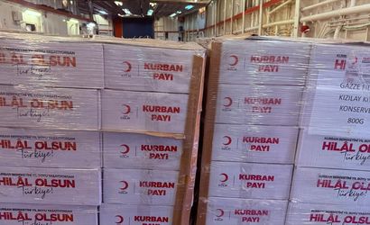 Gazze'ye ulaştırılacak insani yardım malzemeleri, Afet ve Acil Durum Yönetimi Başkanlığı (AFAD) koordinasyonuyla Mersin Uluslararası Limanı'nda 17. "İyilik Gemisi"ne yüklendi.