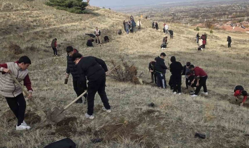 Erzincan'da Demirkent TOKİ Ortaokulu öğrencileri, "Yeşil Vatan Benim Okulum Geleceğe Çare" etkinliği kapsamında Yaylabaşı Beldesi'nde düzenlenen programda 50 fidanı toprakla buluşturdu.