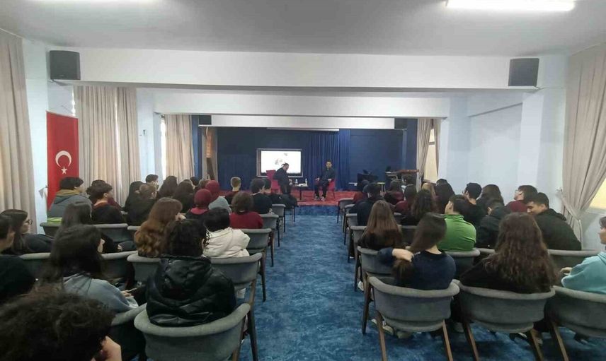 MANİSA SOSYAL BİLİMLER LİSESİ’NDE YAZAR ALPER TUNGA KUMTEPE’NİN KATILIMIYLA DÜZENLENEN SÖYLEŞİDE, YAZARLIK YOLCULUĞU, OKUMA KÜLTÜRÜ VE HAYAL GÜCÜNÜN GÜCÜ KONUŞULDU; ÖĞRENCİLER EDEBİYATLA DOLU İLHAM VERİCİ BİR GÜN YAŞADI.