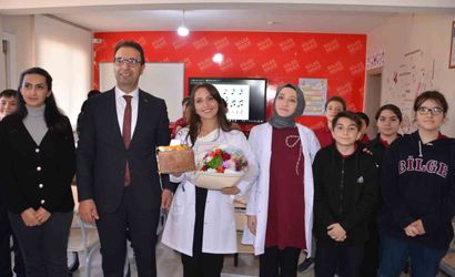 Törenin ardından öğrenciler ve öğretmenlerin katılımıyla Öğretmenler Günü'ne özel pasta kesildi; öğrenciler genç öğretmene sürpriz çiçek takdim etti. Fotoğraflarda öğrencilerin alkışları, tebessümleri ve içten tebrikleri dikkat çekti; Hacer İçoğlu bu anlarda heyecan ve gururu bir arada yaşadı.