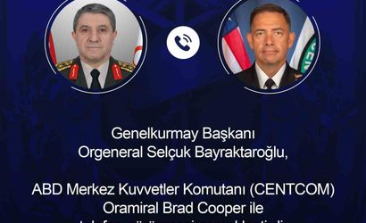 Genelkurmay Başkanı Orgeneral Selçuk Bayraktaroğlu, ABD Merkez Kuvvetler Komutanı (CENTCOM) Oramiral Brad Cooper ile telefon görüşmesi gerçekleştirdi.